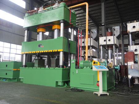 四柱液壓機的控制系統(tǒng)設有調(diào)整、半自動、連續(xù)循環(huán)三種工作方式。半自動和連續(xù)循環(huán)適于單動和雙動拉伸兩種工藝,在單動工藝中分6300KN和10300KN二種力級。液壓控制系統(tǒng)采用了插裝閥集成塊。其高壓泵采用 斜軸式變量泵,并設有液壓油過濾、加熱、冷卻系統(tǒng)。電氣控制系統(tǒng)采用了可編程序控制器,多種故障報警指示器和非接觸式保護控制裝置的紅外光幕控制器可根據(jù)用戶需要配備下液壓墊、打料裝置移動工作臺、沖裁緩沖裝置、光柵裝置。
