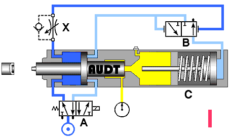2、100噸單臂液壓機(jī)以液體作為介質(zhì)來(lái)傳遞能量,采用進(jìn)步的子母缸液壓回路,油溫低,空行程速度均在150MM/秒以上, 工進(jìn)速度30 MM/秒以下,