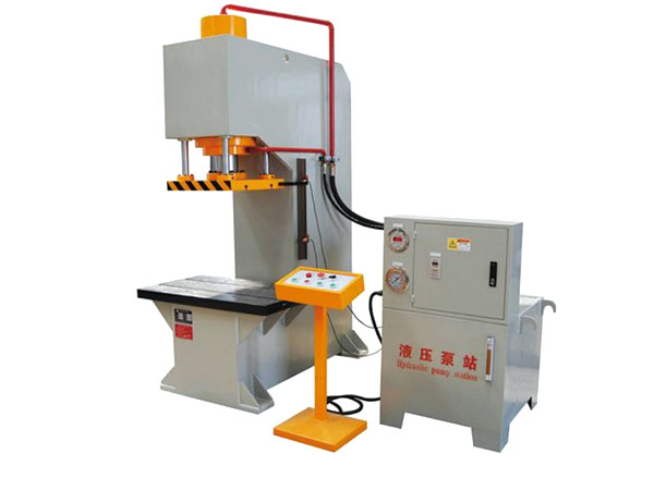 100噸單柱液壓機(jī) ,機(jī)身為C型單臂式結(jié)構(gòu),采用埋弧焊焊接,焊接后通過(guò)振動(dòng)處理,以保證機(jī)身的不變形程度。液壓系統(tǒng)位于機(jī)身內(nèi),外