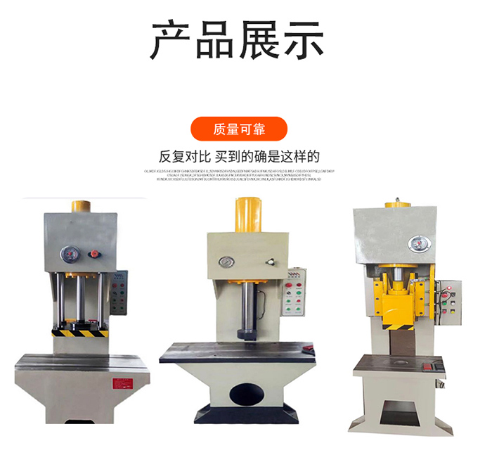 單臂液壓機(jī),機(jī)身為C型單臂式結(jié)構(gòu),采用埋弧焊焊接,焊接后通過(guò)振動(dòng)處理,以保證機(jī)身的不變形程度。液壓系統(tǒng)位于機(jī)身內(nèi),外型美觀,操作方便。