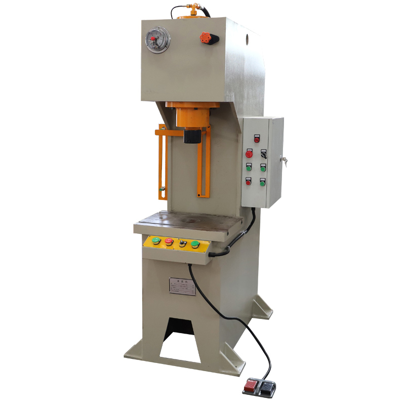40T單臂液壓機(jī)又稱C型開式結(jié)構(gòu)液壓機(jī),單柱結(jié)構(gòu)液壓機(jī)的很大優(yōu)點(diǎn)是操作方便,可三面接近工件,裝卸機(jī)件簡單方便,特別是軸類零件校直和板材彎曲成型等工藝應(yīng)用,這一結(jié)構(gòu)形式十分方便。