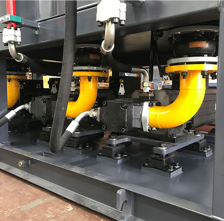 4.3液壓泵站由油箱、高壓泵、電動機、插裝閥等組成,油箱系鋼板焊接。油箱采用封閉式油箱,設(shè)有清洗窗口和放油塞,使清潔換油方便。油泵吸油口裝有吸油濾清器,確保油的清潔度,保證油泵和閥的使用壽命,泵站帶有水冷散熱。